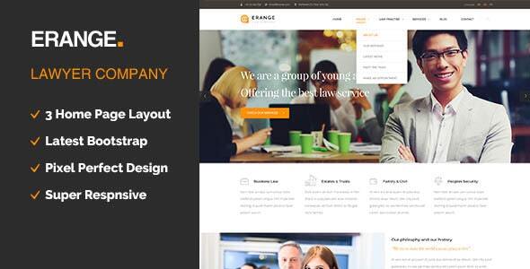 Erange – HTML Template is a all perpose super Template. This template is specially for law firm and law agency. Also, it can be easily customized for any market whatsoever, also it was 100% mobile responsive design to perfect look on any devices.