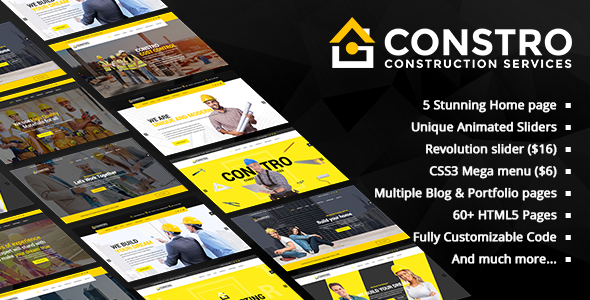 Constro is the most enticing, creative, modern and multipurpose Construction Premium HTML5 template suitable for any Construction, business or corporate websites. The template has been Created especially for construction, building, architecture, company, corporate, electrical, handyman, plumber or electrician, engineering, industry, interior, isolation, maintenance, painting, projecting, renovation, mechanic, transport, carpenter, craftsman workshop, painter or similar craftsman or repair business website.