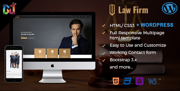 Law Firm is a personal HTML template with responsive code that can be used for Law Firm website or for a personal website. The template is designed and coded in form considering user-friendly features for all sections. We have also thought outside the box and included different sections that you need for your website. Practise Areas, News Letter option, Social media icons, Blog, Map button, Best wishes or testimonial section, Facts and the Form are the key sections on the page. Suitable for Sports, Party, Law Firm, Portfolio, Wellness, Personal, Wedding websites.One page responsive template suitable for all.