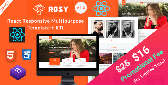 Rosy React is a creative ReactJS and Bootstrap 4 based template with unique design layouts and styles. This template is a great fit to showcase your Product Landing page, Portfolio, Agency, Photography, Travel Agency, Corporate, Business, Fitness Center, Restaurant, Medical, Construction, Education site or a creative business or personal Blog site. This offers Retina Ready layout designs, user-friendly options, and multipurpose orientation simply made the template all in one digital presentation for any business focussed website.