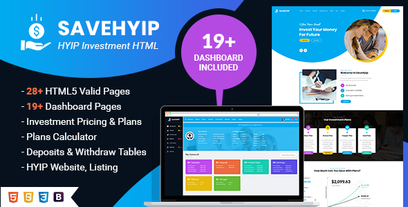 SaveHYIP is evaluated a unique & modern Responsive HYIP Investment Business HTML template for HYIP listing & directory Website with clean and trendy design. Includes full functions necessary and researched detail based on experience user. Designed on grid system, your site will auto responsive layout and look sharp on all screens. This template you can use it for a lot of website such as HYIP Listing, HYIP Monitor, hyip website, all hyip monitor, hyip review, Hyip Listing, CryptoCurrency Listing, ALTcoin Listing with Complete Dashboard Pages